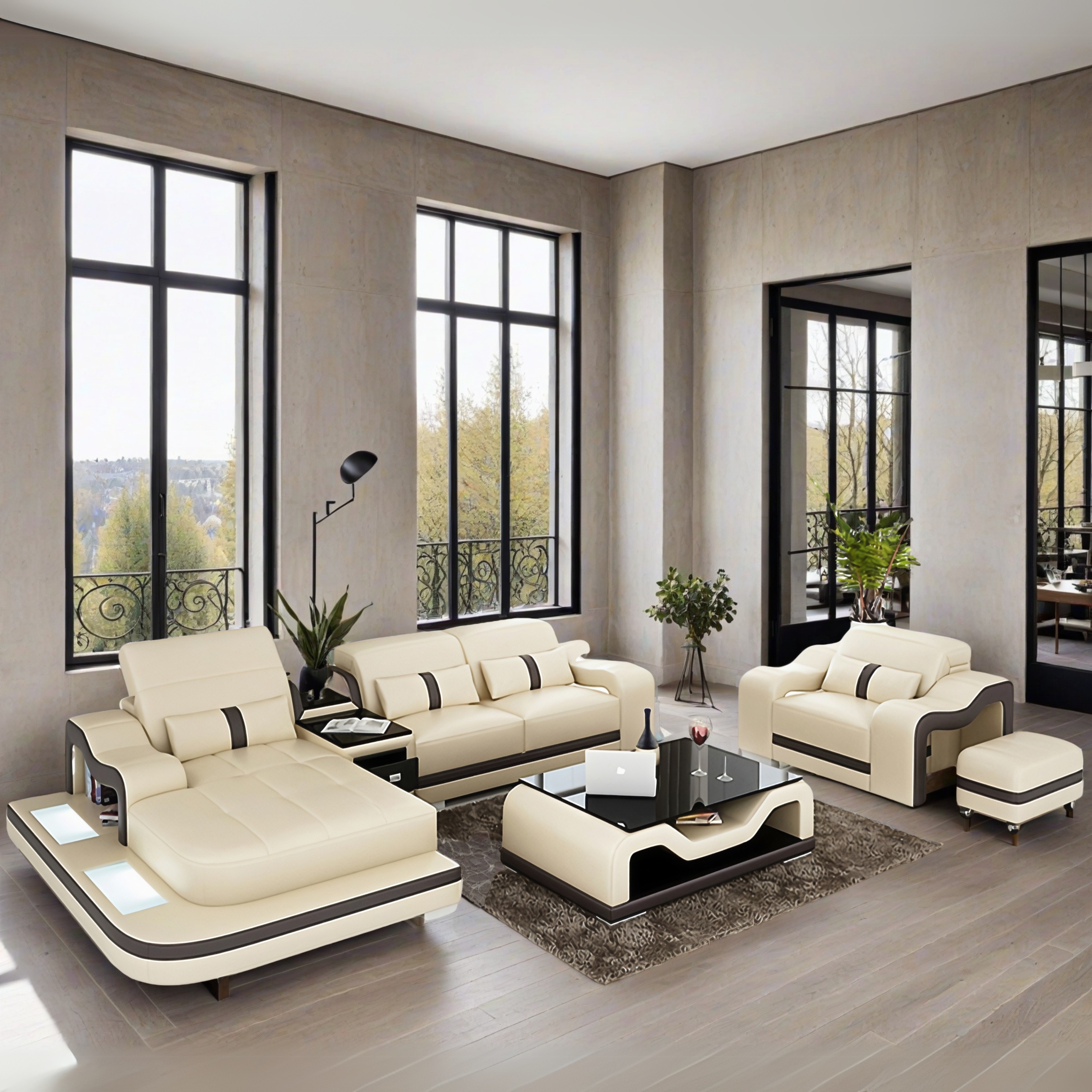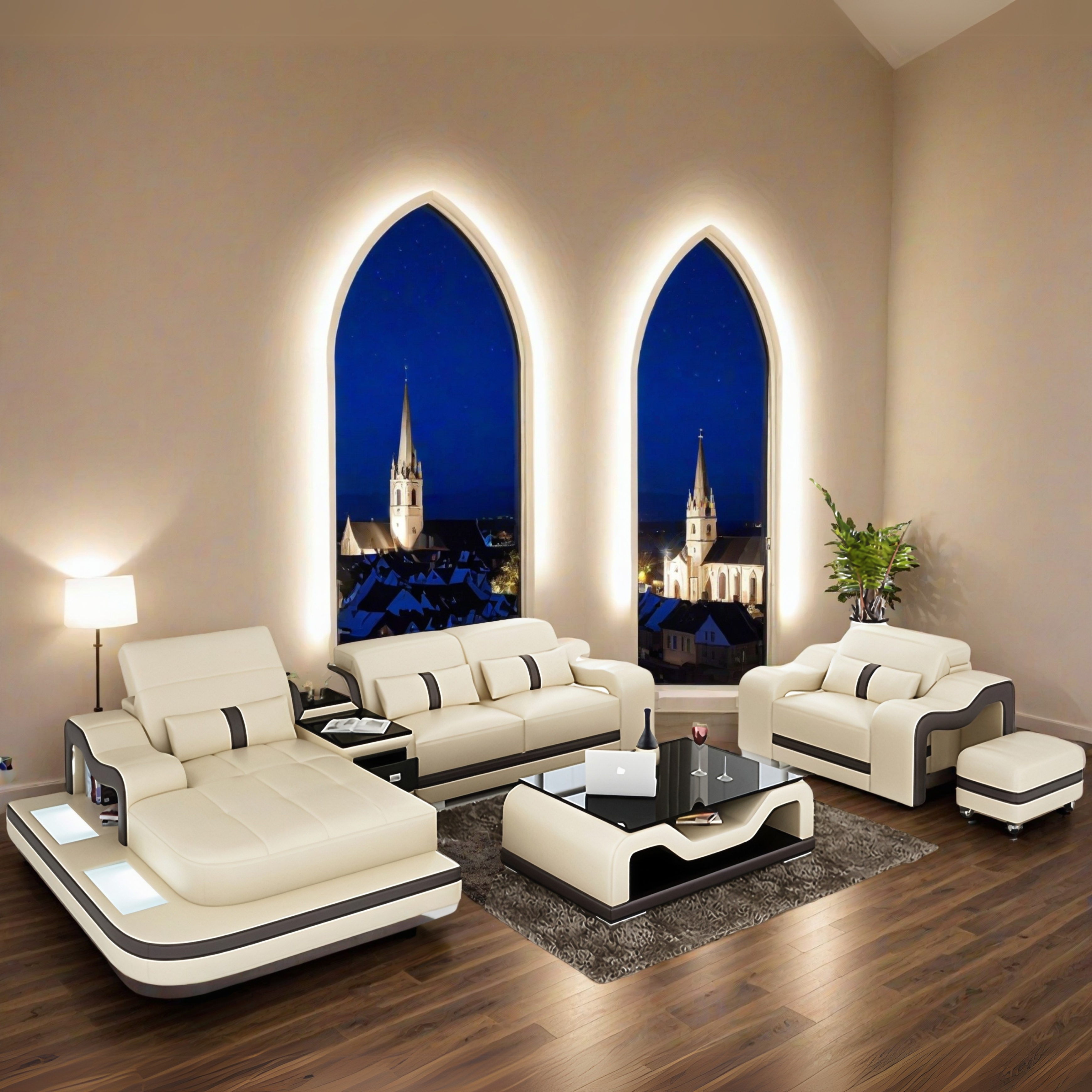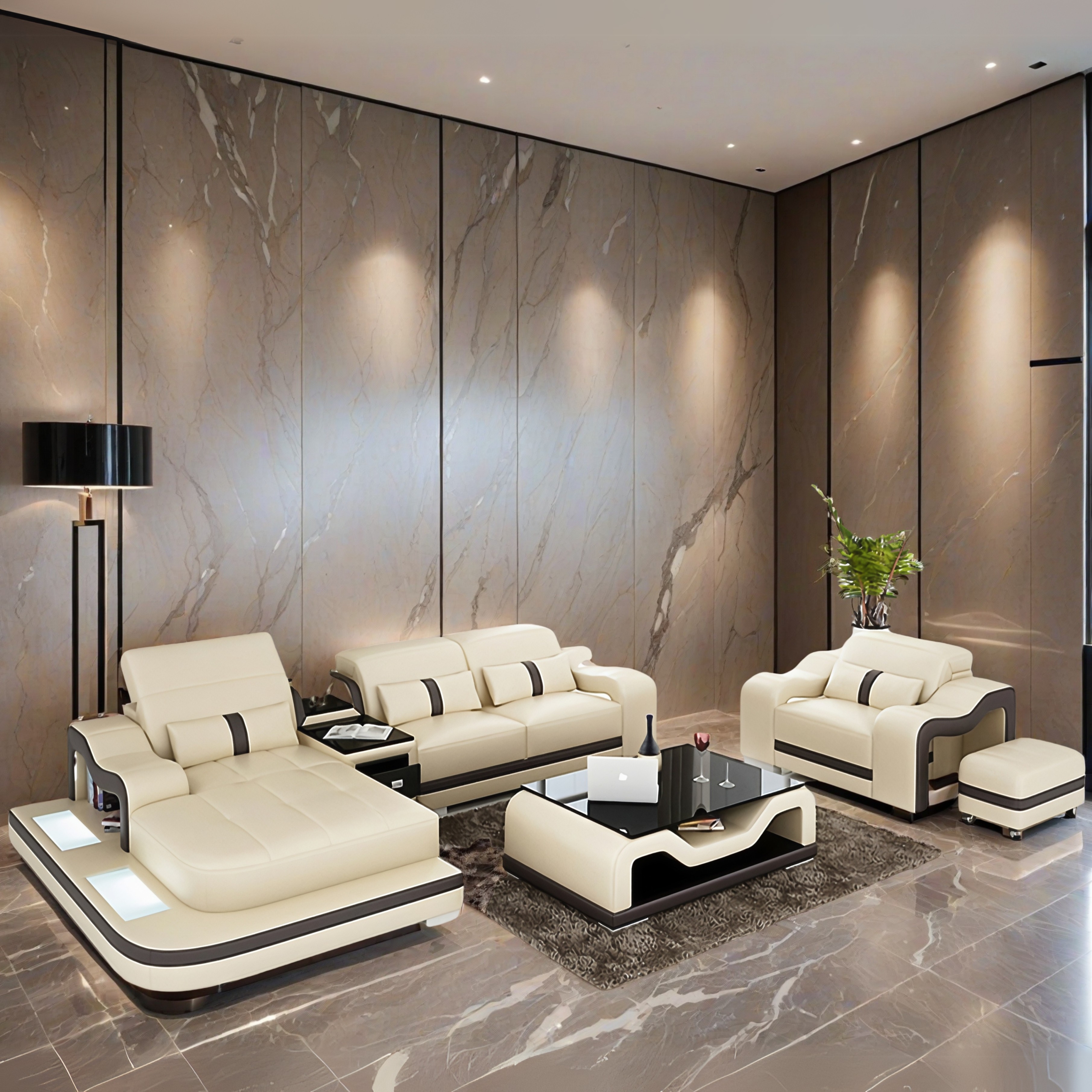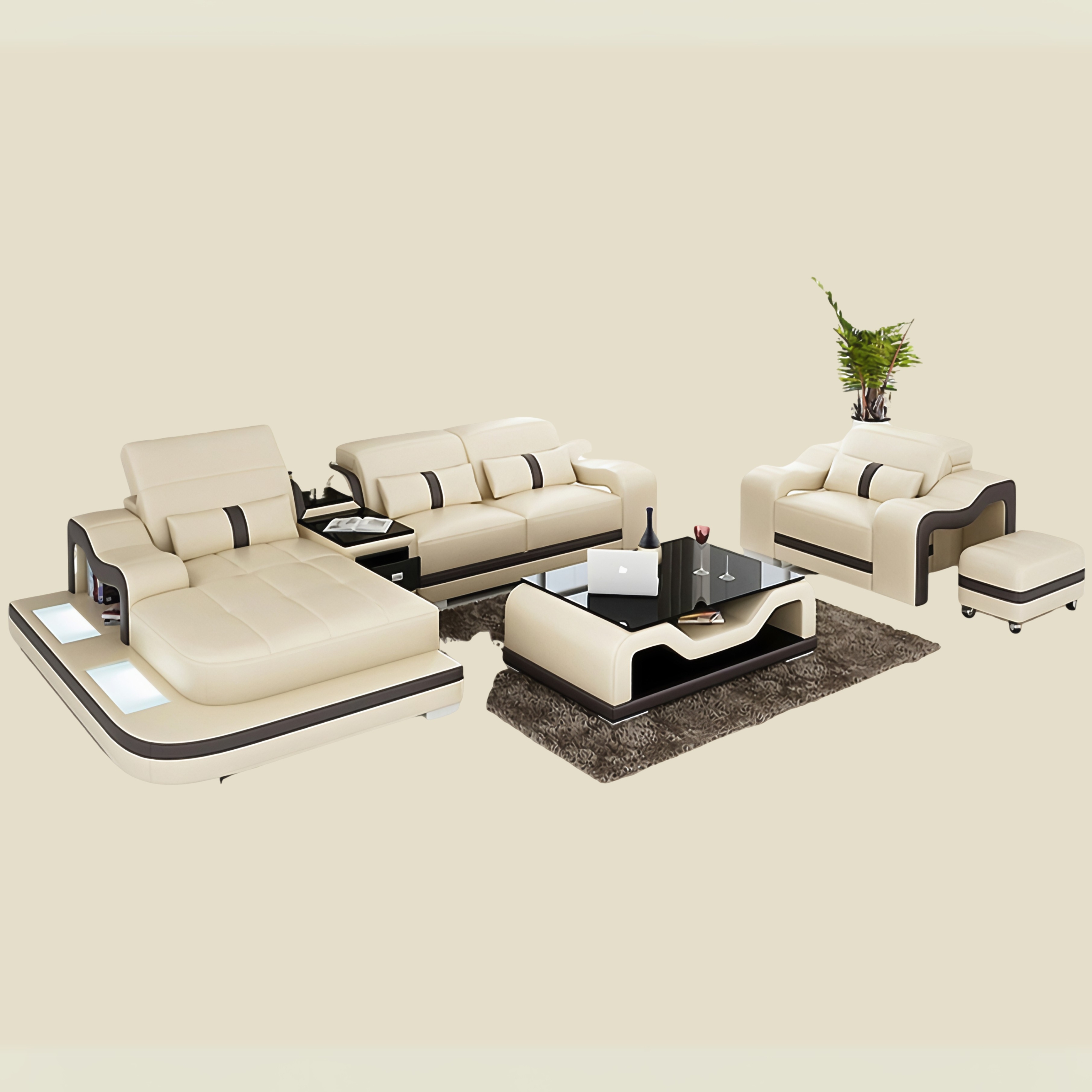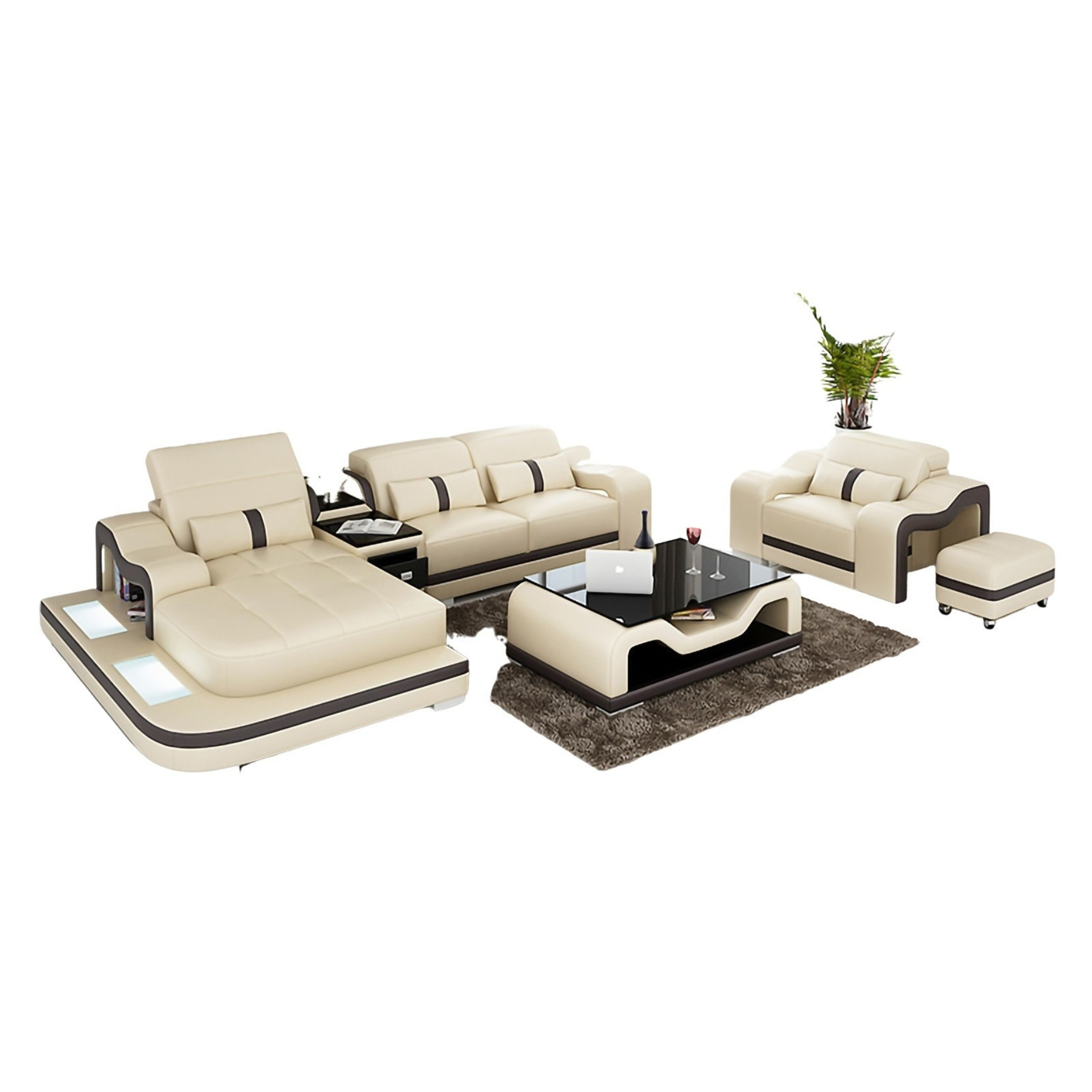 Vielleicht möchten Sie auch kreative Features wie Couchtisch, TV Board eine LED Unterboden Beleuchtung, USB Charger, eine Bettfunktion, Getränkehalter mit Kühlfunktion oder Bluetooth Lautsprecher?