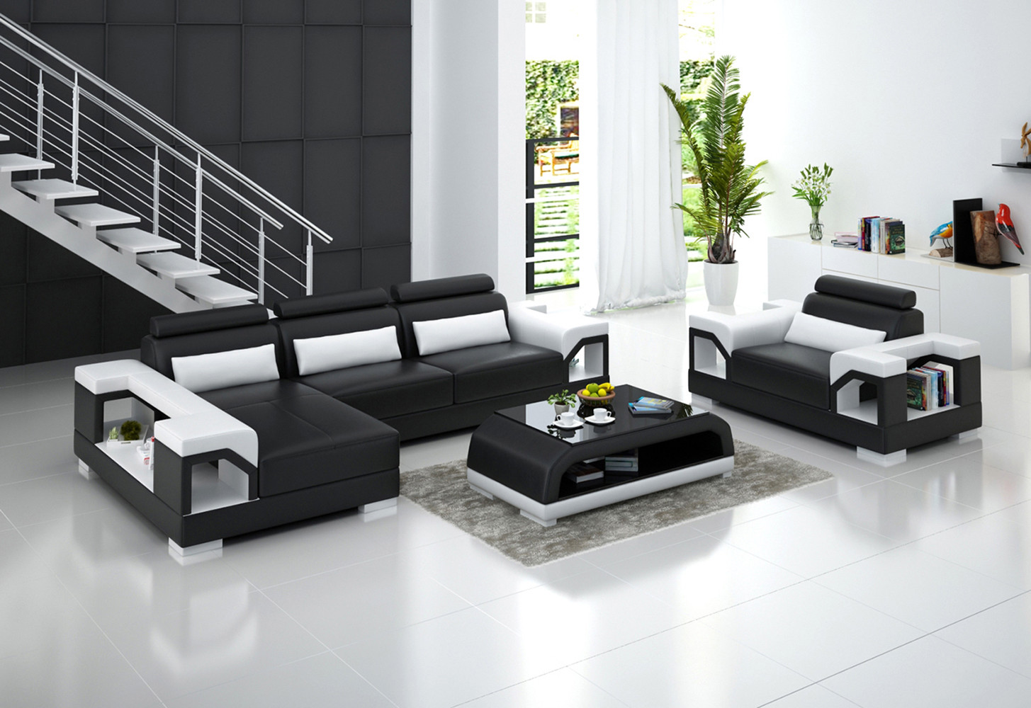 Alle Teile sind frei im Raum aufstellbar, was bedeutet, dass alle Rücken bezogen sind.