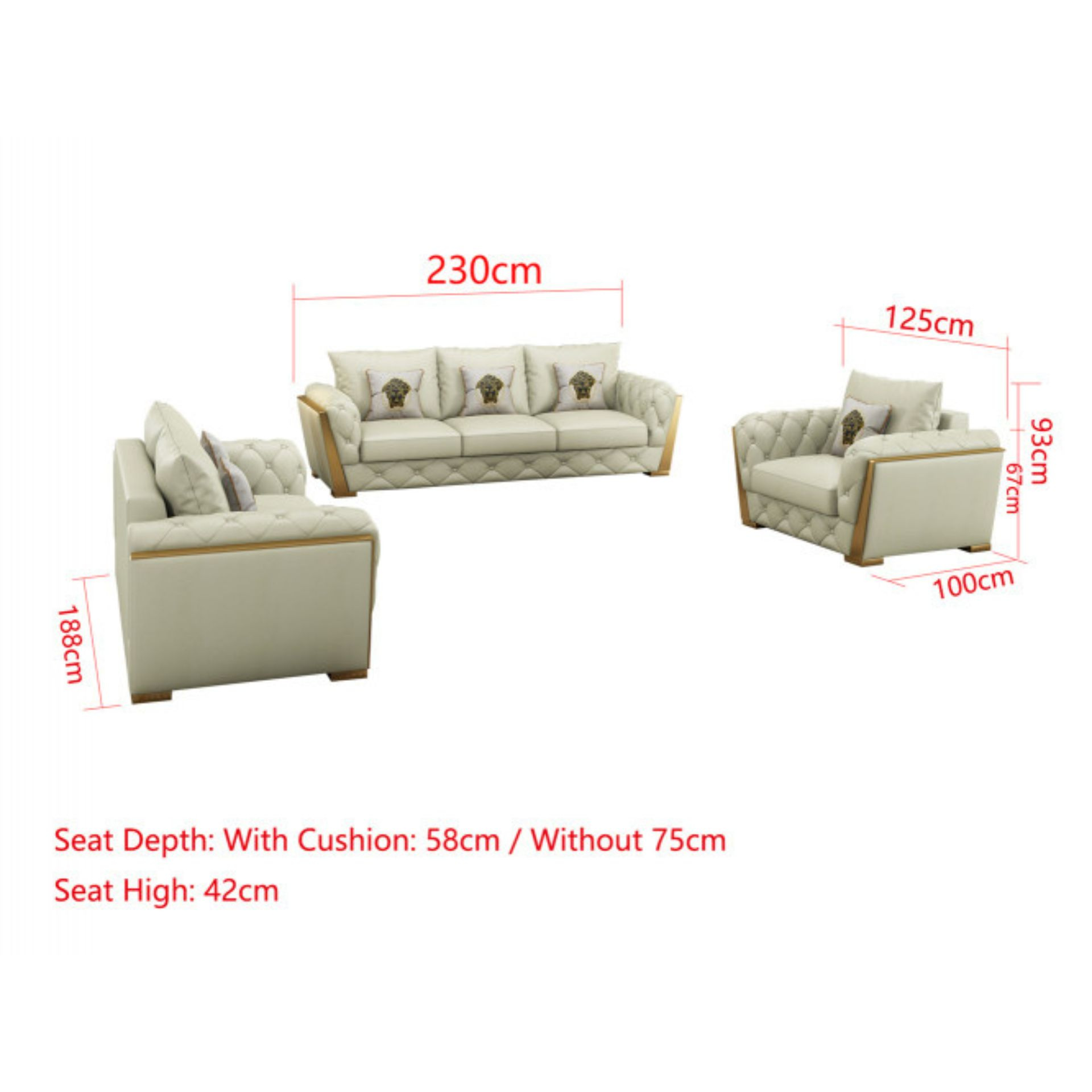 Bitte beachten Sie, dass generell Leder Sofas als solche bezeichnet werden wenn alle gepolsterten Flächen wie Sitzflächen, Rückenflächen also Flächen welche mit unserem Körper in Berührung kommen in Echtleder sind. Flächen welche zum Beispiel das Gestell verkleiden sind generell und branchenüblich aus Kunstleder.