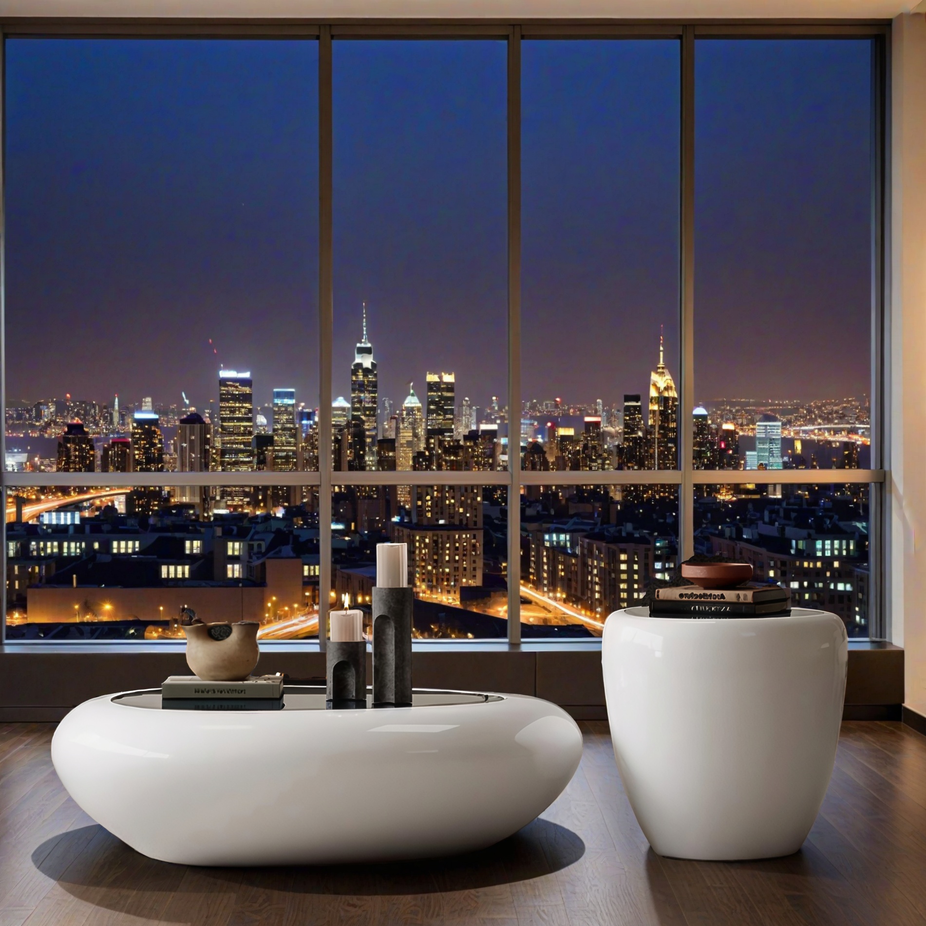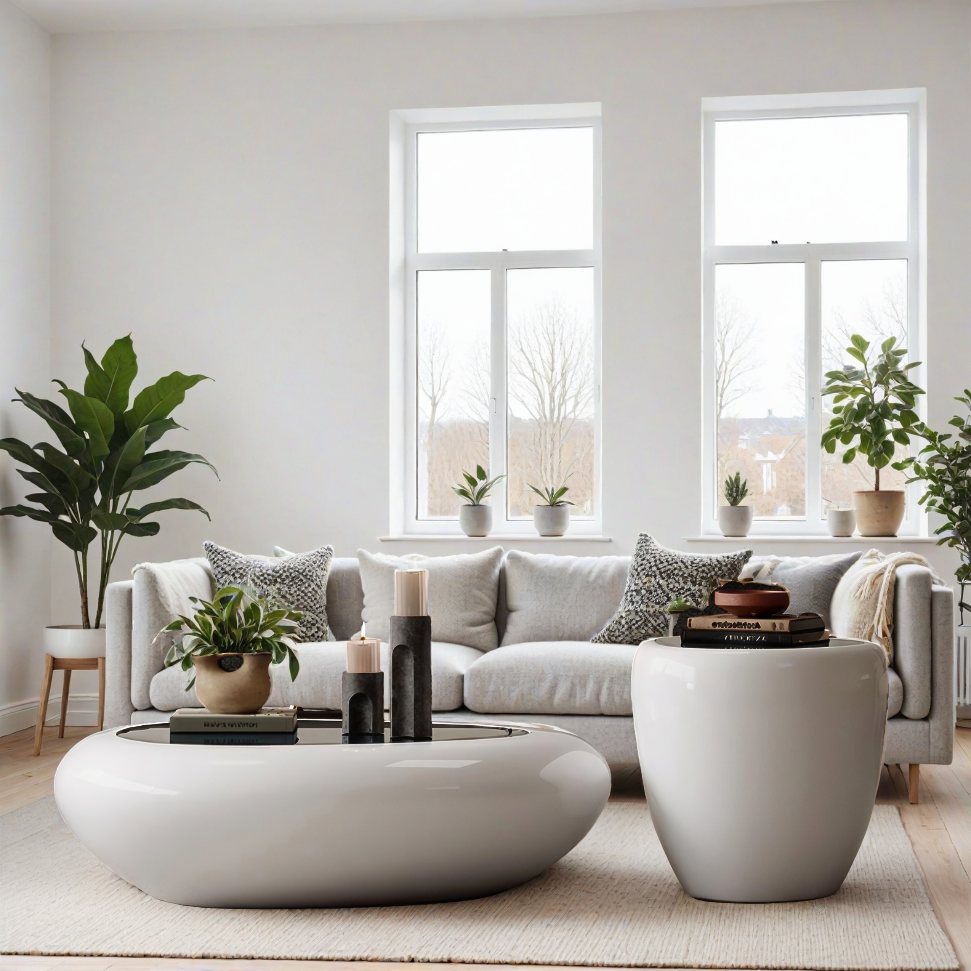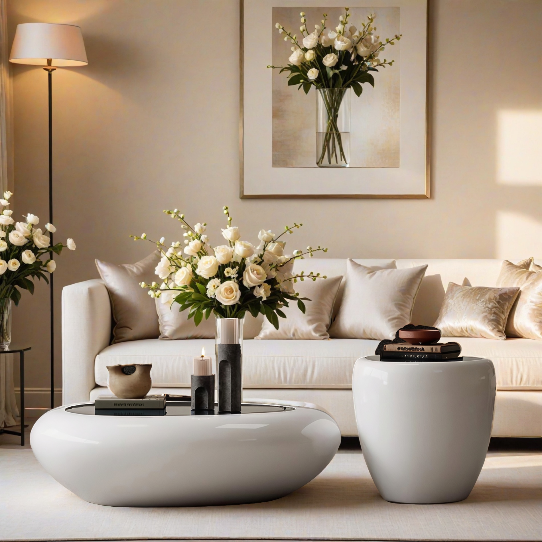 Dieses Tisch-Set verk�rpert pure Eleganz in ihrer einfachsten Form. Mit ihrer sanft gerundeten Silhouette und der makellos gl�nzenden Oberfl�che erinnern die beiden Tische an moderne Kunstobjekte, die Funktion und �sthetik m�helos miteinander verbinden. Das Set besteht aus zwei unterschiedlich hohen Elementen � einer flachen, breiten Variante und einem h�heren, zylindrischen Begleittisch. Gemeinsam schaffen sie ein harmonisches Ensemble, das jeden Raum durch seine ruhige Ausstrahlung und skulpturale Pr�senz bereichert. Die glatte Hochglanzoberfl�che reflektiert das Licht dezent und l�sst die Tische wie handgefertigte Keramik erscheinen. Ob im Wohnzimmer, in der Lounge oder im Eingangsbereich � diese Designst�cke setzen stilvolle Akzente und bieten gleichzeitig Platz f�r Dekorationen, B�cher oder Accessoires. Ein minimalistisches Meisterwerk, das durch seine organische Form und hochwertige Verarbeitung besticht � perfekt f�r alle, die modernes Wohndesign lieben und klare Formen mit emotionaler Tiefe sch�tzen.