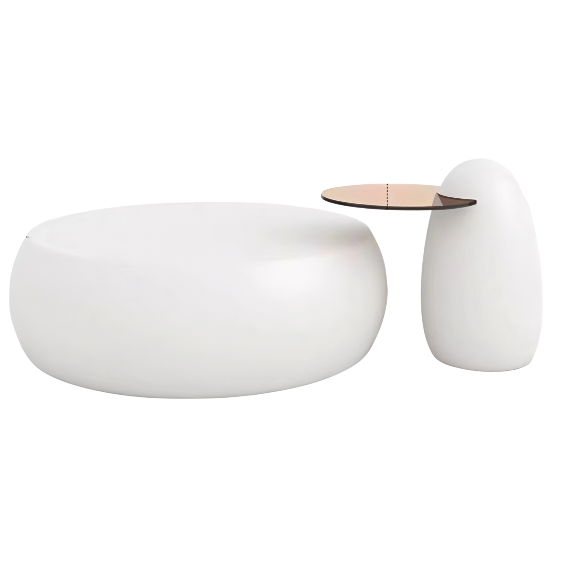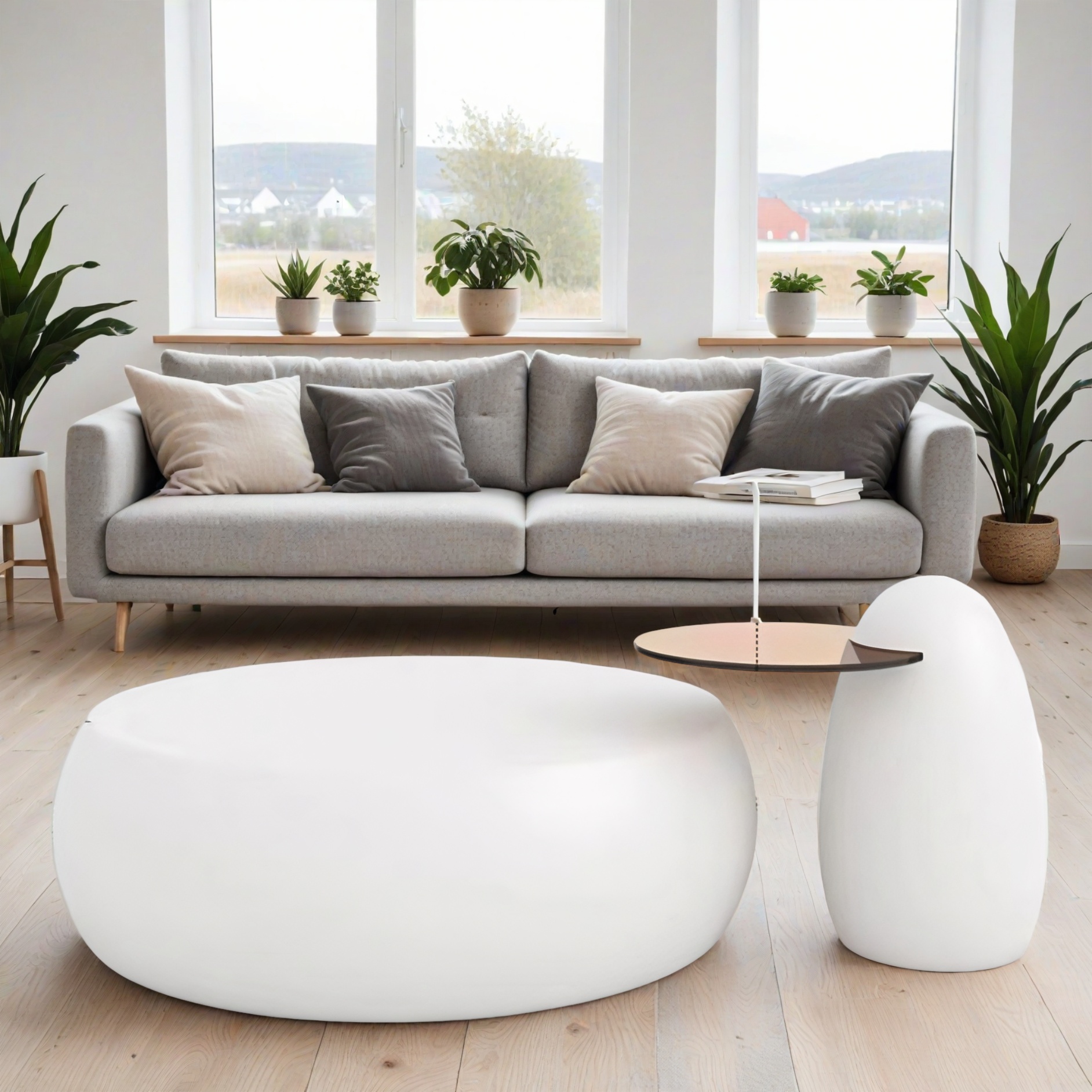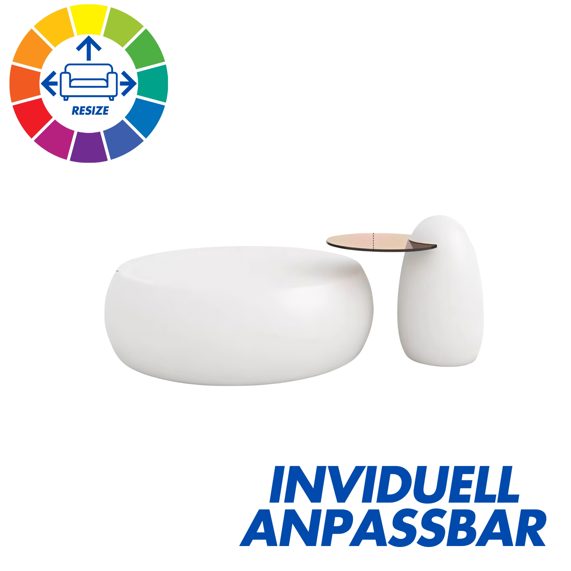 Ein Couchtisch wie eine sanfte Skulptur � organisch geformt und perfekt f�r moderne Wohnr�ume. Die runde, flie�ende Silhouette sorgt f�r Ruhe und Balance im Raum. Das schlichte, wei�e Design l�sst sich vielseitig kombinieren und verleiht jedem Interieur eine elegante, zeitlose Leichtigkeit.