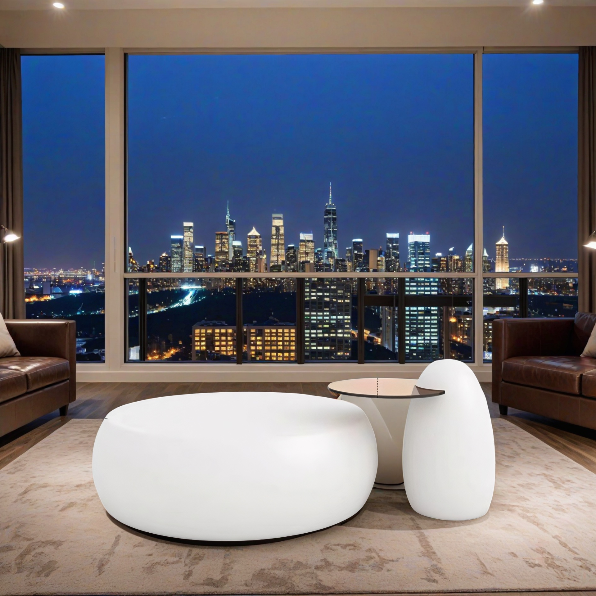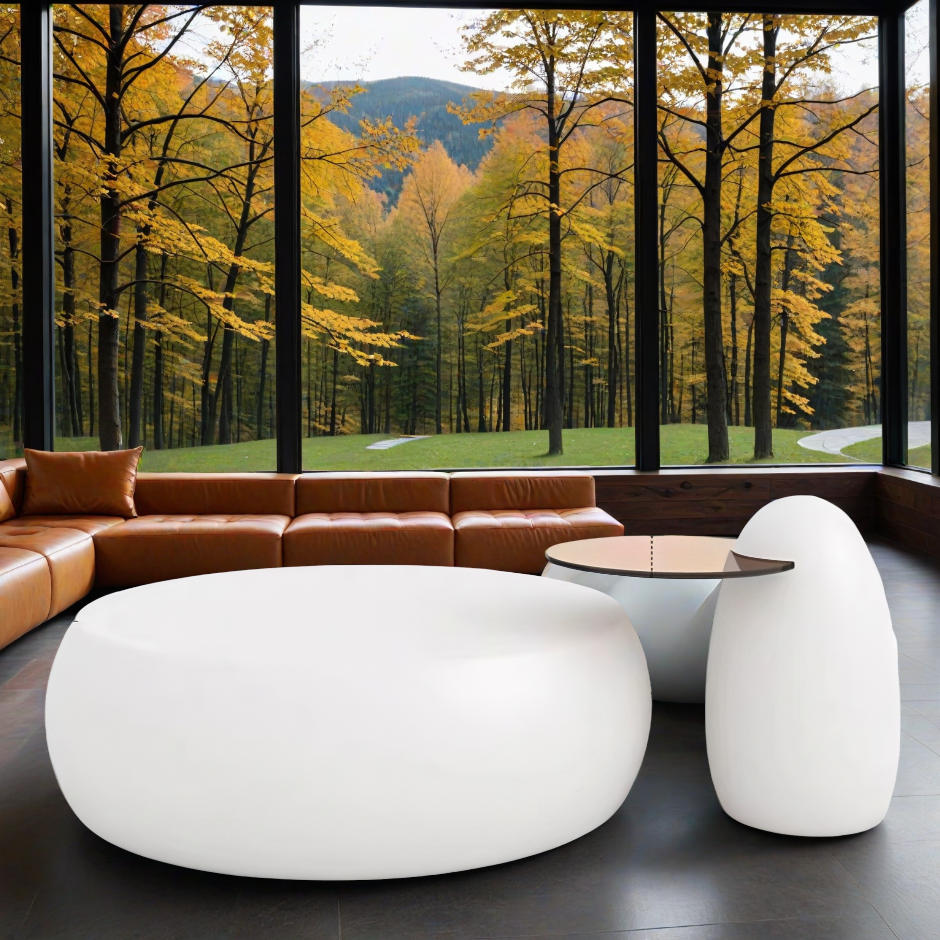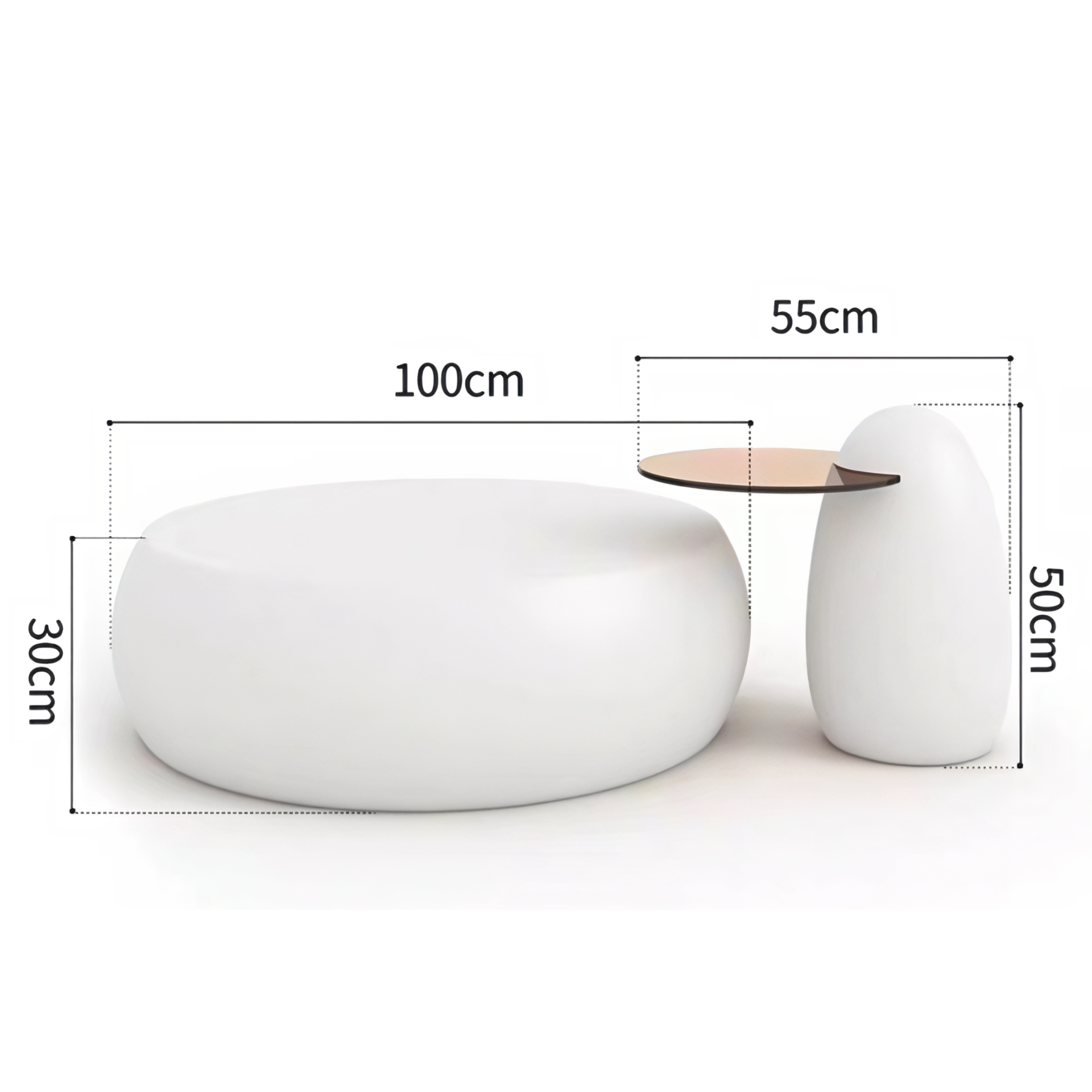 Ein Couchtisch wie eine sanfte Skulptur � organisch geformt und perfekt f�r moderne Wohnr�ume. Die runde, flie�ende Silhouette sorgt f�r Ruhe und Balance im Raum. Das schlichte, wei�e Design l�sst sich vielseitig kombinieren und verleiht jedem Interieur eine elegante, zeitlose Leichtigkeit.